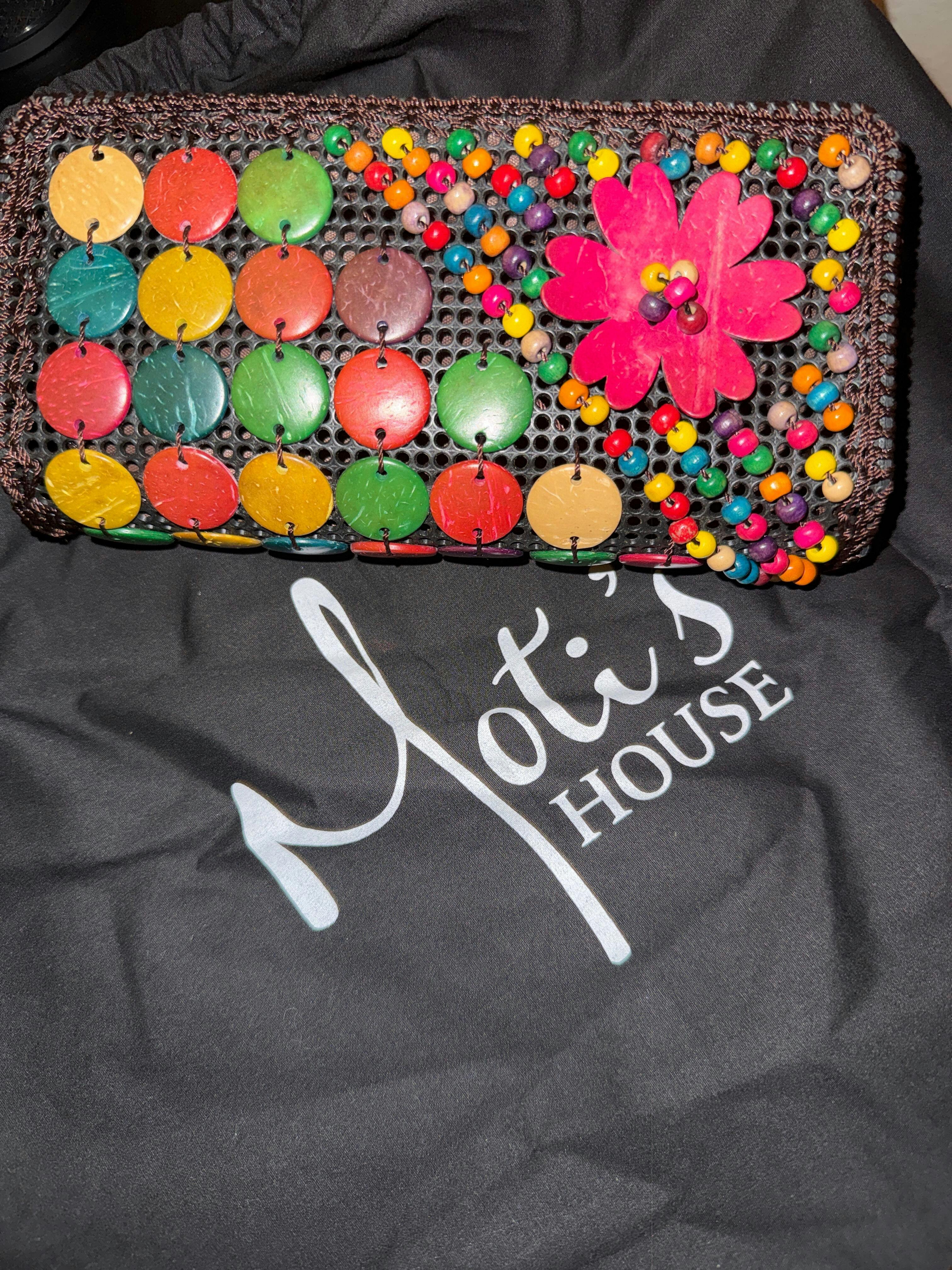 The Shine Moti Beaded Wristlet is a conversation piece that merges natural beauty with thoughtful design. Handcrafted with rich coconut-wood beads, this wristlet celebrates the artistry and resourcefulness of craftsmanship that is turning everyday style into a statement of culture and confidence.